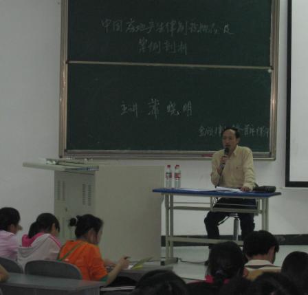 2008年4月9日晚,经济管理系荣幸地邀请到四川省政协委员、成都市政府立法委员会委员、美中国际交流促进会特别顾问、四川金领律师事务所首席律师、西南政法大学法学硕士研究生蒲晓明主任来校举办讲座。讲座题目为《中国房地产法律制度概论及案例剖析》。
