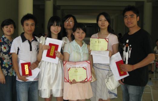 为表彰先进、树立榜样,学院经过认真考察评选,决定授予一批学习认真努力、在校表现突出、综合素质优异的2005级同学“优秀大学毕业生”称号。我系张琴、赵丽、魏杉杉、陈婷、刘跃、蒋雪梅、周扬、陈根、吴永强、谢丹、万瑜11名同学荣获“四川华新现代职业学院优秀大学毕业生”称号,其中张琴同学被推选为“四川省2008届优秀大学毕业生”。