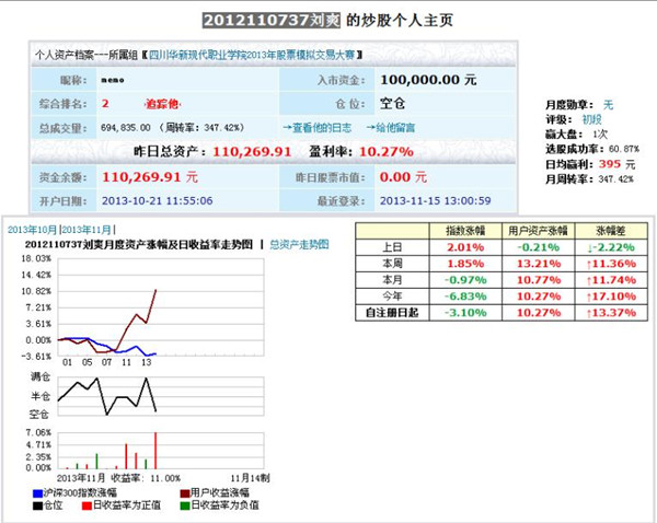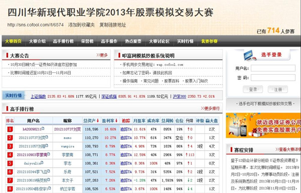 11月15日,历时近1个月,我院2013年股票模拟交易大赛圆满结束。
