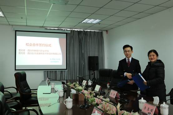 2018年1月12日,经济管理学院与金蝶软件(中国)有限公司及四川弘宇睿通税务师事务所有限公司举行校企合作签约仪式。金蝶精一信息科技服务有限公司执行副总裁乐志军,弘宇睿通税务师事务所办公室主任赵军尧、财务代理部部长胡书秒,高职院副院长涂捷,经济管理学院副院长陈欣等领导出席了签约仪式。