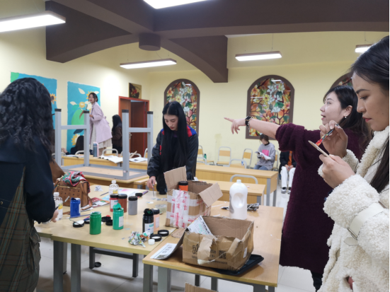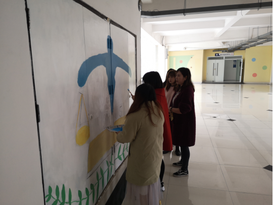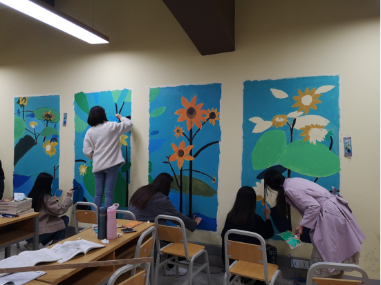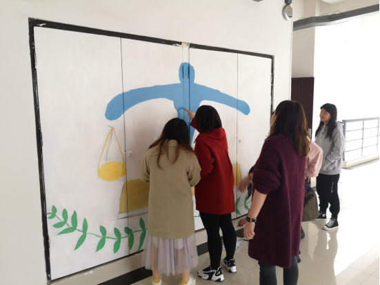 2020年11月,2019级文秘专业全体同学在刘丹老师带领下,将专业课程《艺术学基础》中所学理论与实践相结合,对知行楼201B教室进行艺术改造。