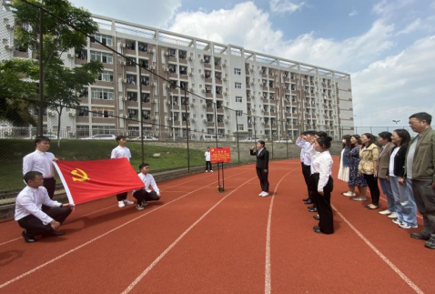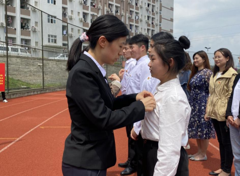 宣誓后,党员老师代表为新党员佩戴党徽,希望他们始终牢记党的宗旨和义务,牢记自己的党员身份,时刻铭记使命,立足岗位,发挥“党员就是旗帜,党员就是标杆”的先锋模范作用,不负党的重任,践行入党誓词,永葆共产党员的先进本色。