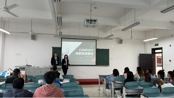 参加本次活动的企业有四川成都贝壳闹海房地产经纪有限公司、京东商城、成都凯高建材有限公司、五八信息技术有限公司成都分公司、成都顺和安居房地产经纪有限公司等多家公司,企业代表们首先介绍了各公司的基本情况,包括所处位置、企业规模、主营业务等,接下来讲到了公司的发展历史、企业文化、招聘岗位及职责、工作制度、薪酬待遇、员工福利等同学们切实关注的内容,尤其强调企业愿意为追求上进的员工提供更好的发展平台与条件。宣讲结束后,企业代表还就同学们关心的问题作了回答与说明。紧接着,根据同学们提交简历的情况现场开展面试,多数同学当场即获得了复试的资格。