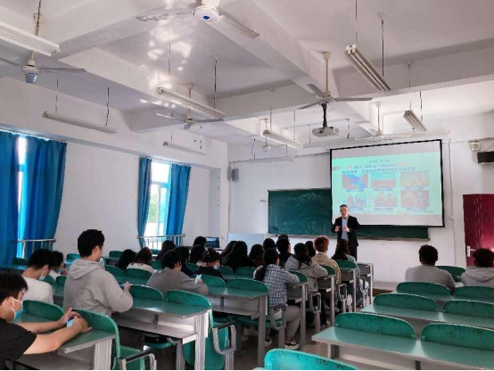 整个讲座为期90分钟。首先由工商管理学院院长赵鸿鹞,为同学分享后疫情时代,旅游消费者产生的新需求,以及旅游业的变革与创新。鼓励同学积极适应新变化,只要愿意学,只要肯干,发展机会很多。