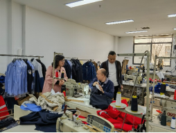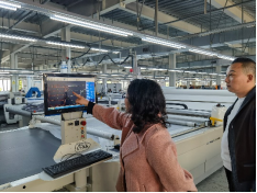 张蕾老师对接的是四川祥合鸟服饰有限公司的陈泽荣厂长,他给我们介绍了近段时间企业用人的情况。也跟着陈厂长了解现目前服装厂的企划、流水线生产管理、技术等相关情况。