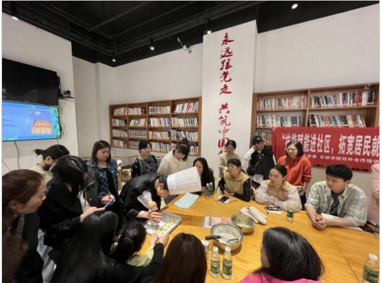 上游社区党委书记蒋永根、学院对外合作培训党支部书记符又仁、文创旅游学院党支部书记陈丽玉、北方项目负责人项雷、部分党员同志及参培居民共30余人参加。