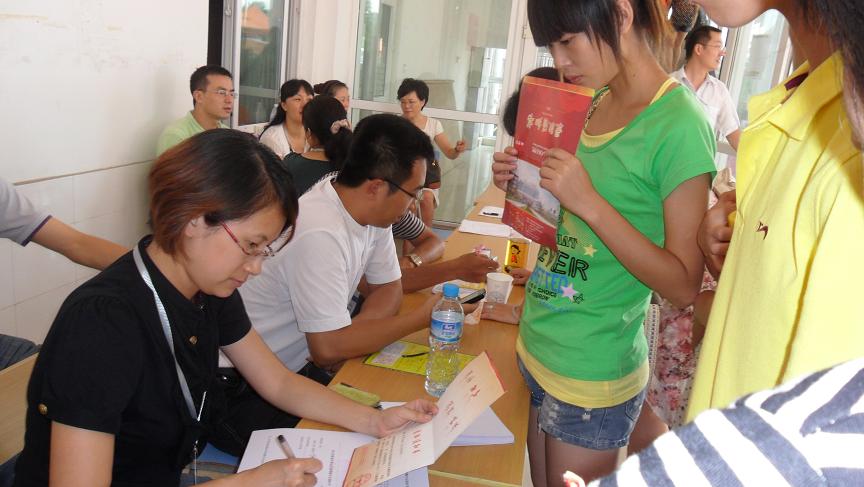 金秋时节,旅游系迎来了2011届新生。为保证迎新工作顺利进行,我系精心准备。新生报到处独具特色,有介绍我系开展的各项教学活动、学生活动的视频,为新生以及新生家长了解旅游系提供了更直观的资料;随处可见的由我系制作的“携手旅游系,共创新辉煌”、“心系你心,情牵旅游”、“汇聚旅游系,共创美好明天”等鲜艳、醒目的标语,引领新生关注旅游系、热爱旅游系。红色的横幅、充满朝气的宣传标语、鲜艳的系旗、真实鲜明的视频画面以及亮丽的旅游系礼仪,无一不成为独特的风景。
