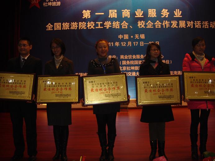 最后,大会向校企合作最佳(优秀)学校和企业颁发了奖状,我院旅游系和四川绿洲大酒店获得了最佳校企合作称号。