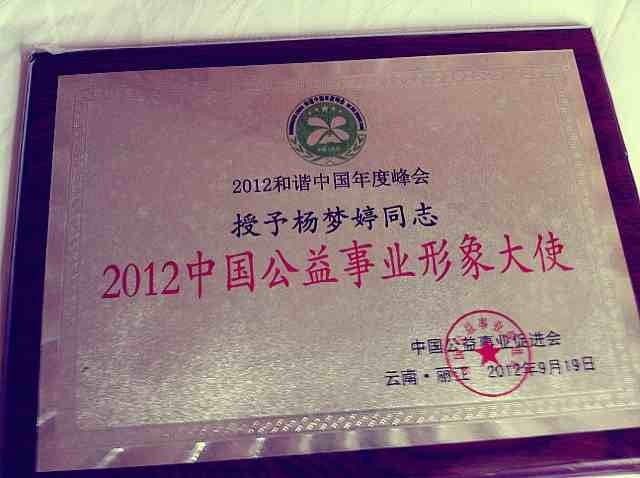 晚会随后颁发了2012中国公益事业形象大使奖项,我系学生杨梦婷荣获中国公益事业形象大使称号。