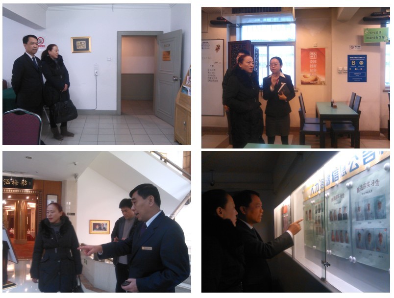 随后几天,夏主任分别走访了北京京伦饭店、兆龙饭店、民族饭店。重点考察了饭店给予实习生提供的住宿、餐饮、文化活动等环节,在整个考察过程中我们感受到企业浓厚的文化氛围,感受到企业人力资源以人为本的的服务细节。如饭店后勤部门都在地下办公而将楼上的房间整理给实习生居住,饭店为实习生配备了无线宽带、自习教室、乒乓球室等活动场所,此外各部门会定期举行一些体验活动让大家参与,增强大家对服务的体验和集体凝聚力。