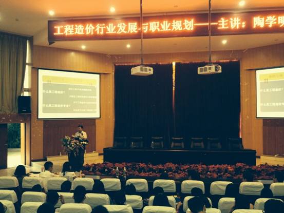 9月8日,受我院邀请,中国建设工程造价管理协会专家委员会教委会副主任、四川省土木建筑学会建筑经济专业委员会副主任、西华大学工程造价研究所所长陶学明教授莅临我院进行专业建设与发展指导工作,并为工程造价专业学生举行了《工程造价行业发展及职业发展》的专题讲座。学生们反响热烈,会后争相与陶教授合影、签名留念。陶教授此行对我院工程造价专业建设与发展提出了许多宝贵意见,也给工程造价专业学生提供了与行业知名专家教授面对面交流的机会,为造价专业同学们指明了专业学习方向、坚定了行业职业信心。