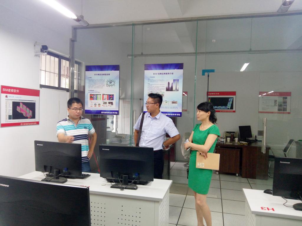 为了推动职业教育建筑类专业的教育改革,增加专业教师对BIM技术的应用以及与现有教学体系如何结合,我院建筑类专业教师于6月27日在系主任谭征、副主任吉力此且的带领下,来到了四川建筑职业技术学院成都校区信息工程系进行参观学习。此行受到了信息工程系领导的热情接待,并与建筑信息管理专业教师展开了专题教研交流会。会上建院教师就建筑信息管理专业的发展、课程体系及人才培养方案、BIM的应用及市场的需求等做了详尽的介绍,之后参观了该系的BIM实训室,并就实训室建设与管理作了深入的交流。此次学习交流为我院建筑类专业的发展提供了明确的思路,进一步促进了建筑类专业的建设工作。