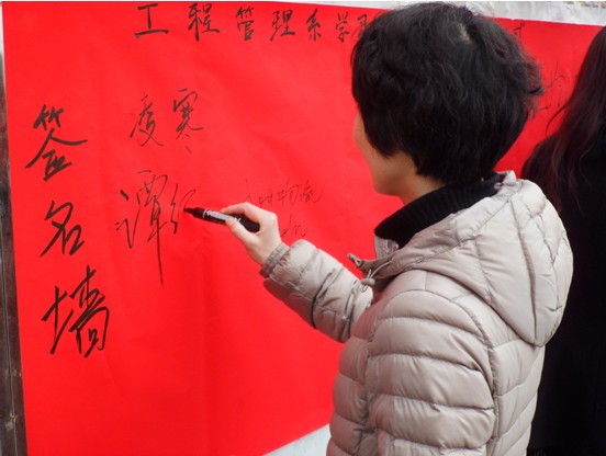 进行活动的老师和同学们相继在签名墙上签名