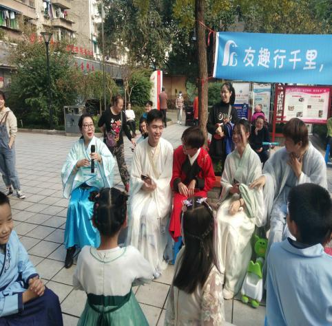 “着汉服、品诗词文化探索之旅——唐诗宋词飞花令”活动于2020年11月7日在玉林街道办事处举行,建筑和交通学院青年志愿者分队携手华新汉服社团共11人参加本次活动。