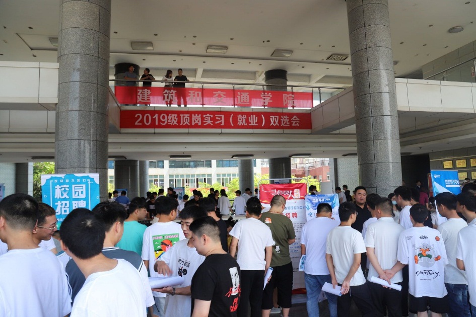 为确保2019级实习生顺利找到实习单位,我院线上线下齐动员。线上通过建立“建筑和交通学院就业指导群”,为实习单位和实习生搭建了线上资讯平台;调动专业负责人积极性,联系各家企业;线下于5月31日在严格遵守防疫相关要求的情况下,邀请20余家企业代表进校参加2019级学生顶岗实习招聘会。