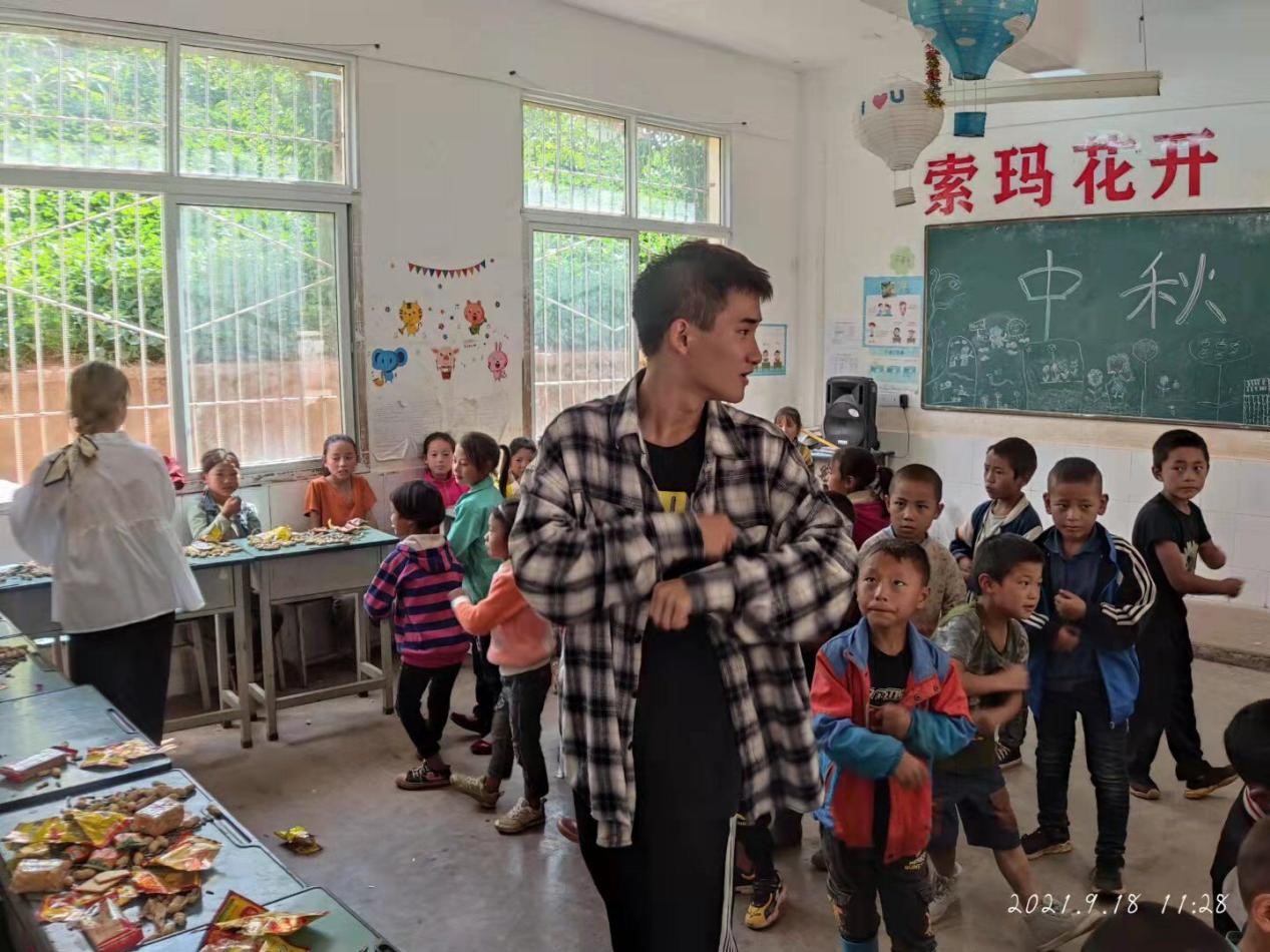 2021年9月,何伟铭来到四川省凉山彝族自治州美姑县九口乡拉木克苦村盈福小学支教。拉木克苦村盈福小学三个年级共63名学生,他任教二年级数学科目,并兼全校的体育课老师。