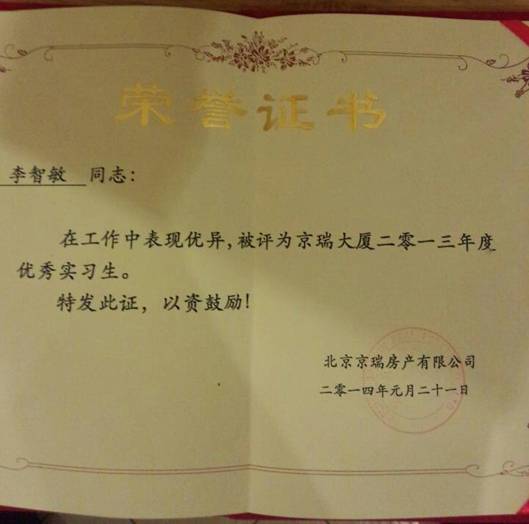 旅游系11级酒店管理专业学生吴美娟、李智敏在北京首旅集团旗下的东方饭店、京瑞大厦实习期间,因表现优秀被酒店评为优秀实习生。