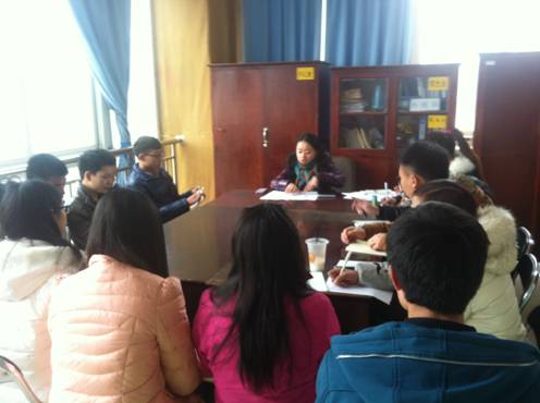 2014年2月28日中午,四川华新现代职业学院志愿者总队各干部在院团委学生办公室召开了新学期志愿者工作部署会议。院团委副书记李佳薇老师、总队长向君,组织部、宣传部、办公室以及各分队队长参加了本次会议。