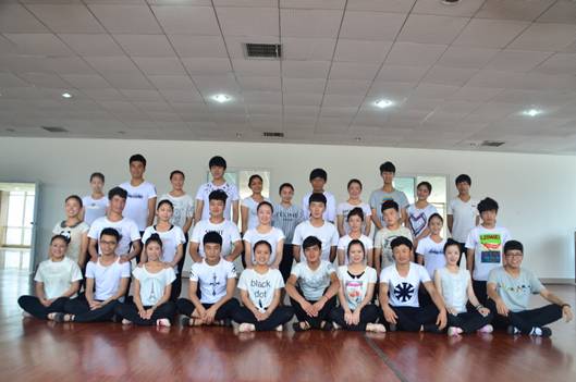 4月3日起,每天中午12:00—13:00,30名同学在王老师的带领下在形体房展开了紧张的训练,大家从节奏、基本动作要领、队形变化、情绪情感逐一深入。为了练好基本功、更好的演绎这支舞蹈,周一至周四早晨舞蹈队同学们统一进行了晨训:软开度训练、体能训练、弹跳等。尽管天气越来越炎热,可同学们的热情却没有丝毫的减弱。排练至今天,整个舞蹈已经大致完成,在王老师的带领下,每天准时训练,力求每一个动作做到更标准。