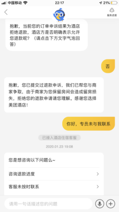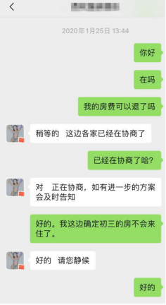 在疫情还未大面积爆发之前,我院某老师打算春节后去旅游,于是预定了旅游之地的某酒店,但是在春节前几天疫情得不到控制,所以老师打算取消酒店订单,但是在取消订单后,商家并没有退款,老师找客服说明原因还是没有得到解决,无奈之下,该老师联系了预定酒店的平台,然后经历了漫长的维权之路,该平台商家退还了全部额款。