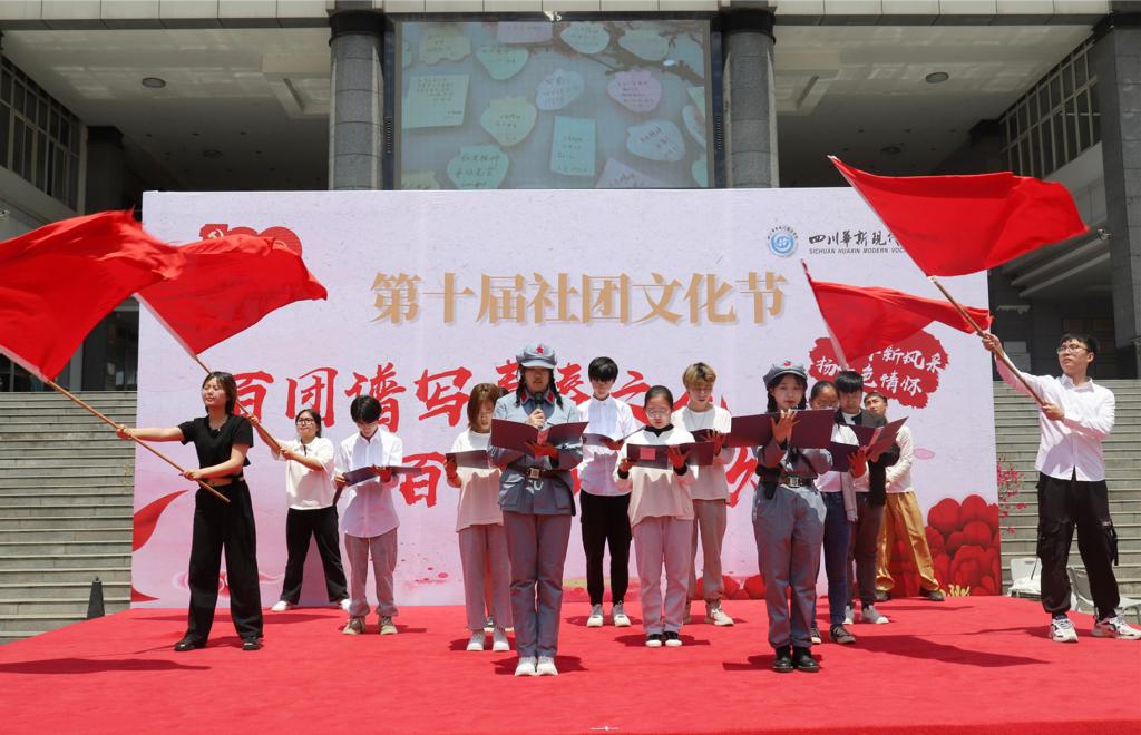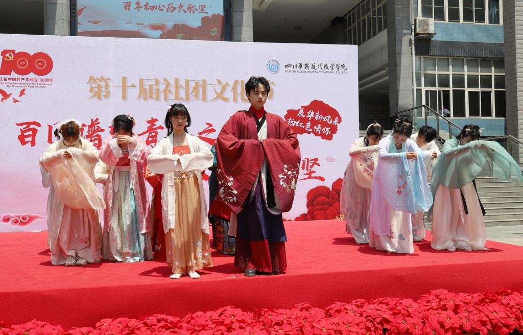 为庆祝中国共产党成立100周年,传承红色基因,弘扬时代精神,4月26日,华新学院举行以“百团谱写青春之花·百年初心历久弥坚”为主题的第十届社团文化节开幕式。