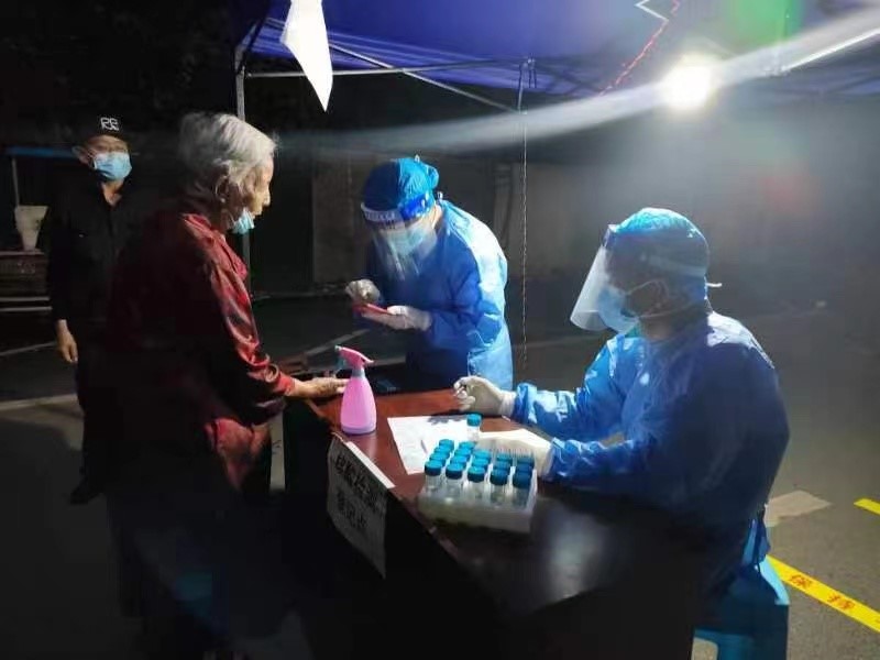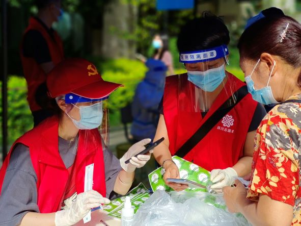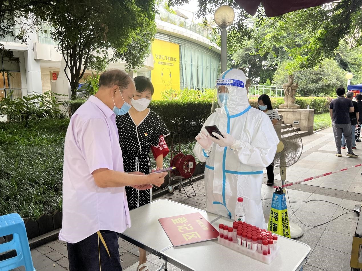 虽然天气炎热,但大家都积极配合核酸检测。遇到老人带着孙辈检测的时候,我会主动询问老人家是否健康码,会不会使用健康码;如果没有,就协助扫码人员完成他的身份证和电话号码录入。