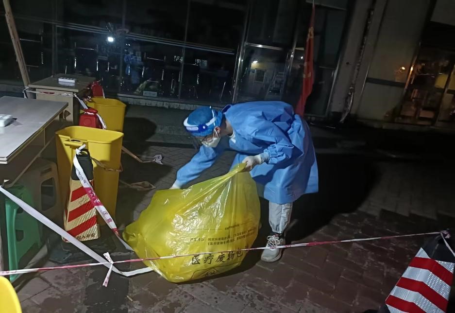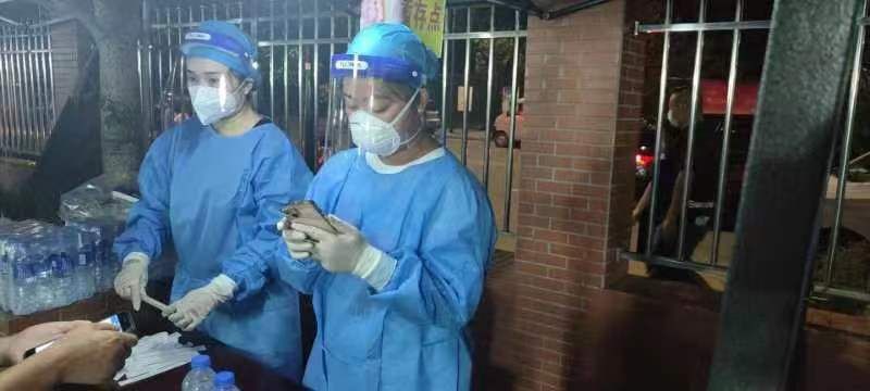由于我们社区人员复杂,所以我们社区做到应检尽检,一天一次核酸,甚至上门采样。第一天我的工作是维持秩序,让大家间隔1米戴好口罩打开健康码。逐渐熟悉之后,第二天开始,社区的姐姐让我去扫码录入信息。这个工作非常的艰辛,隔离衣的闷热让汗水打湿了我的衣服,再加上戴上N95口罩,更是热了起来,连续几天的工作录入工作让我感受到了医护人员和社区工作人员的辛苦。