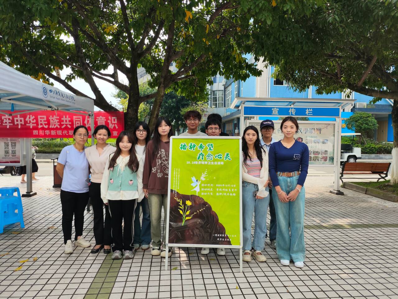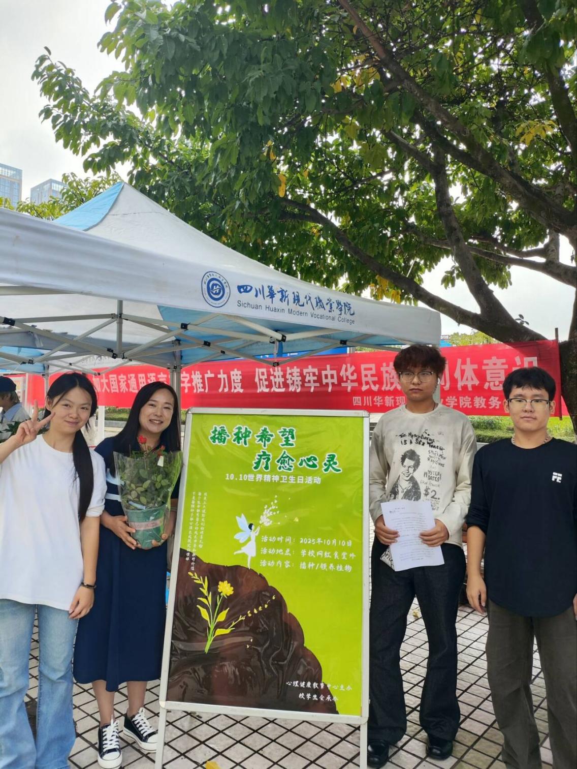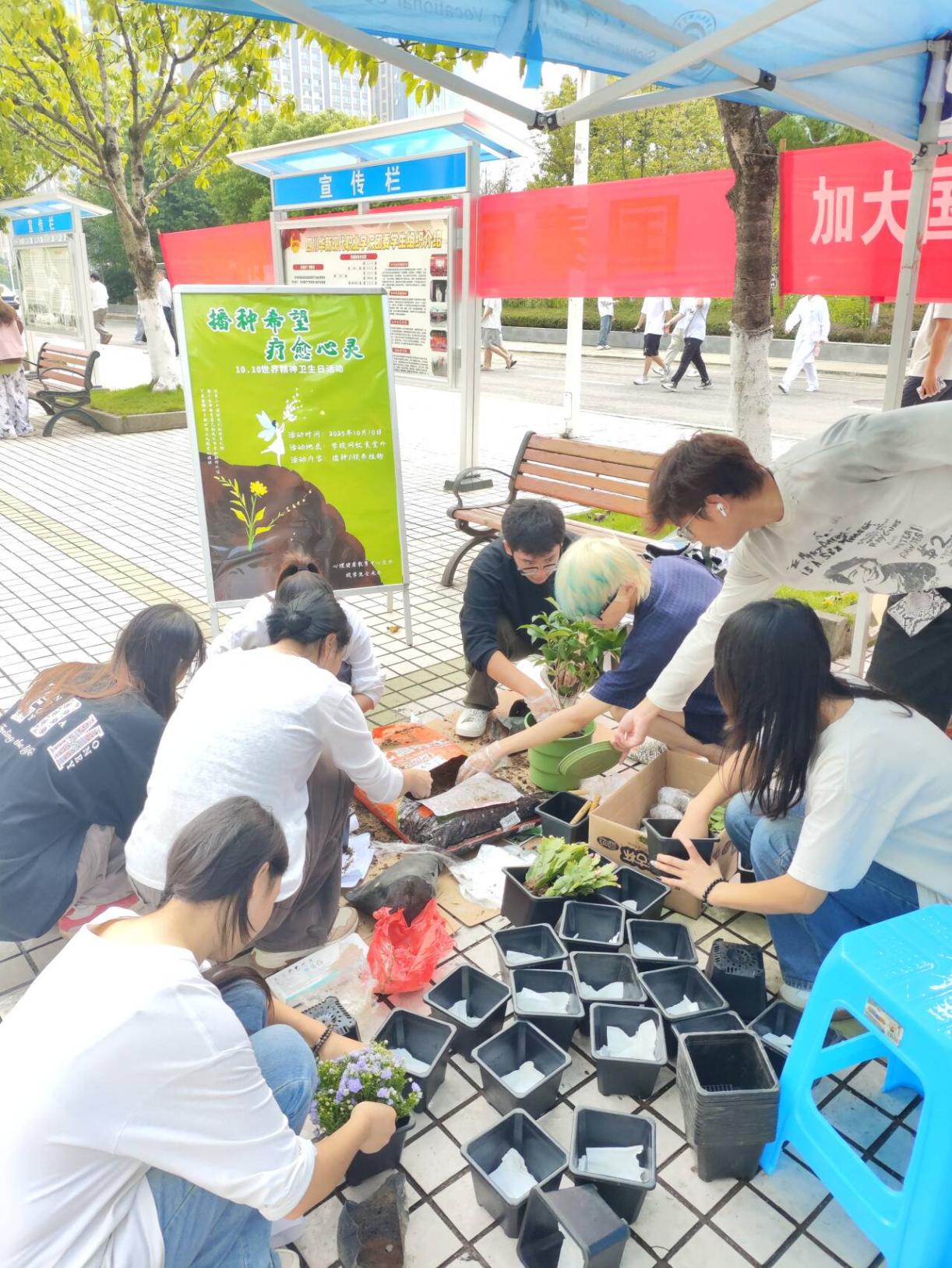 在第32个世界精神卫生日来临之际,为引导学生关注心理健康,以积极心态适应大学生活,由心理健康教育中心主办、校学生会承办的“播种希望,疗愈心灵”活动于10月10日中午在学校食堂门口举办。活动以绿植为媒介,将生命成长与心理调适相结合,吸引众多学生与老师参与,现场充满温暖与生机。