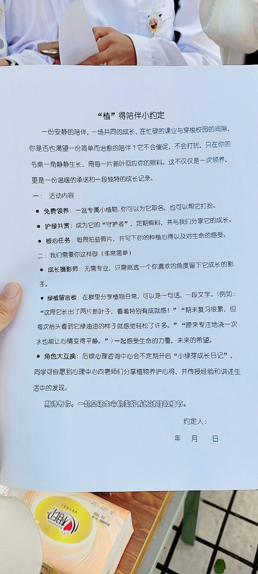 活动不仅限于现场领养,更设计了“长效成长计划”:一是鼓励学生在领养后,通过微信群不定期分享绿植成长照片,记录叶片舒展、新芽萌发的瞬间;二是每月设置“养护心得分享会”,邀请学生交流照料过程中的感悟,比如“为绿植换盆时,发现它的根系在悄悄生长,就像自己在不知不觉中适应了大学节奏”;三是心理老师会结合学生分享的内容,不定期给出心理调适建议,让绿植成为“无声的心理伙伴”。