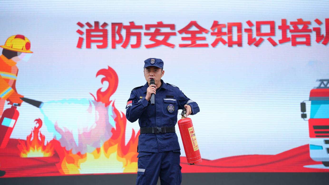 疏散环节结束后,塞弗新创消防公司专业教官结合校园消防安全实际,以通俗易懂的语言为全体学生讲解校内常见消防设施设备的功能作用与操作规范,重点围绕灭火器“提、拔、握、压”的核心操作步骤进行细致演示,确保学生清晰掌握关键知识点。