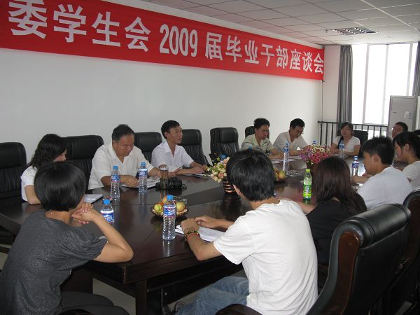 6月19日,在综合楼623会议室召开了团委学生会2009届毕业干部座谈会。学院副院长刘斌和相关处室、系的负责人、教师出席了座谈会,由团委书记杨敏主持。