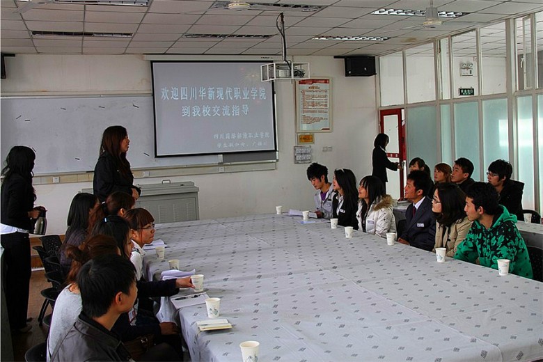 为进一步促进我院团委广播站的建设,更好的为校园提供快速便捷的服务,加强与各兄弟院校的联系。2011年3月16日下午,我院团委学生会的16名学生代表在团委副书记周萌的带领下前往 “四川国际标榜职业学院”实地参观、考察和交流。