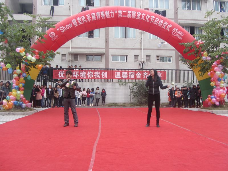 11月29日中午,由学生处主办,院团委、学生会、学生宿舍自我管理委员会承办的我院第二届寝室文化节在学生宿舍区举行了启动仪式。学生处处长邓忠、处长助理杨敏以及辅导员、各寝室室长出席了本次活动。