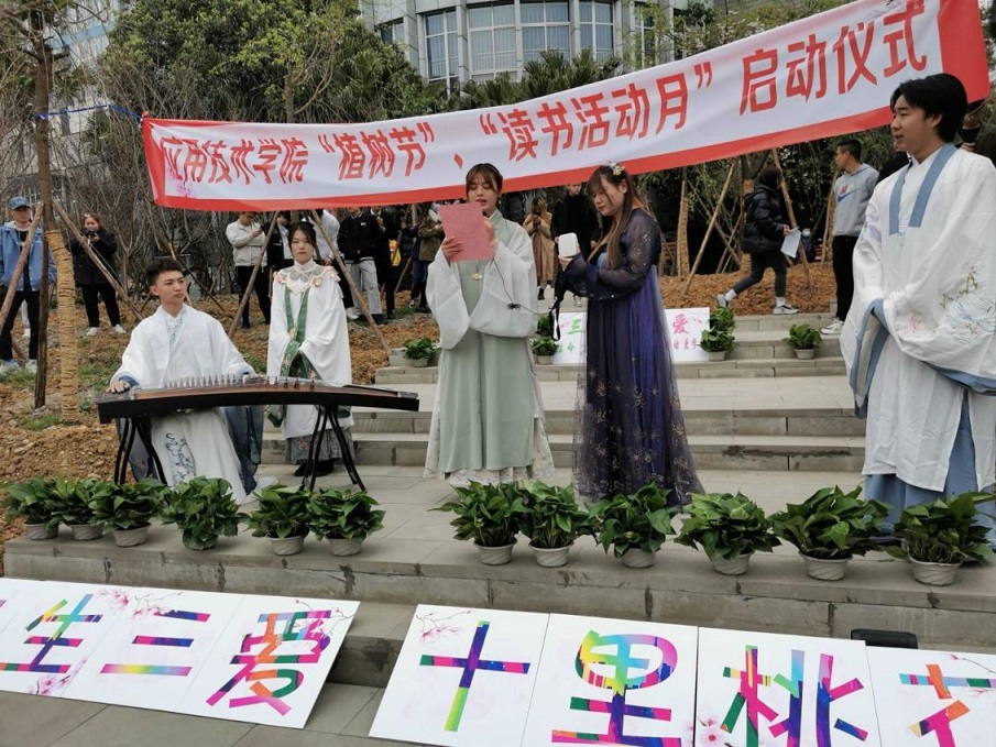 阳春三月,校园的桃花盛开,借着“3.12日植树节”和“4月23日世界读书日”的到来,也为了让同学们充分领略学院最新培育的桃花园的美景,从2021年3月12日起,应用技术学院党支部在师生中隆重启动“三生三爱 十里桃花”主题教育活动。