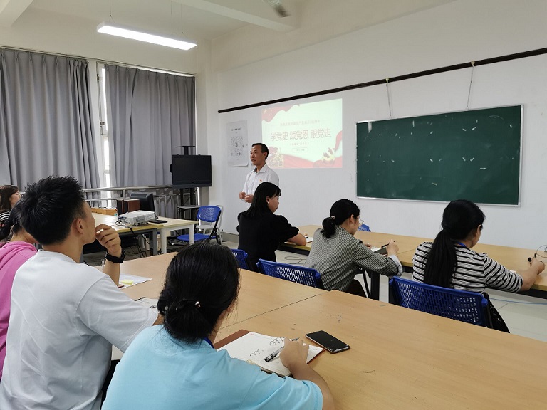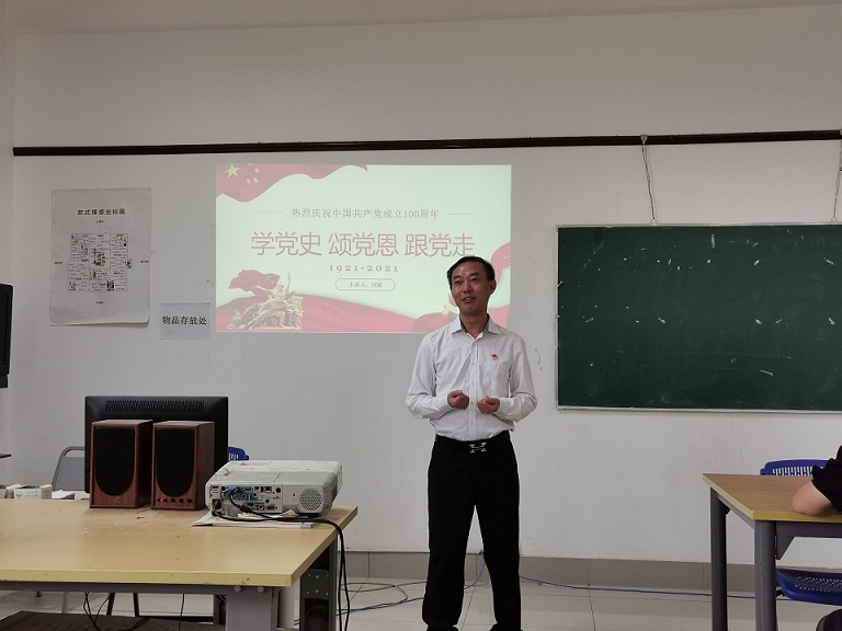 2021年9月17日中午,一场以“学党史、颂党恩、跟党走”的党课在实训楼402室召开,2021级服装设计与制作专业新生,应用技术学院全体党员教师参加了党课。本次党课的主讲教师是学院副院长刘斌同志,刘院长结合自己的成长经历,从三个方面深入浅出的进行了讲解。