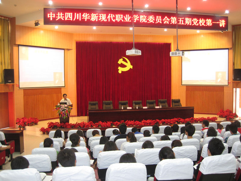 517晚,中共四川华新现代职业学院委员党校第五期培训班在学术报告厅隆重举行。出席会议的领导有学院副院长周仲文、原四川广播电视大学纪委书记、工会主席官联勋、学院党委办公室主任、思政处处长陶军。共有530余名同学参加了本期党校的培训。