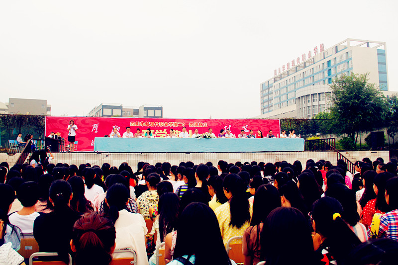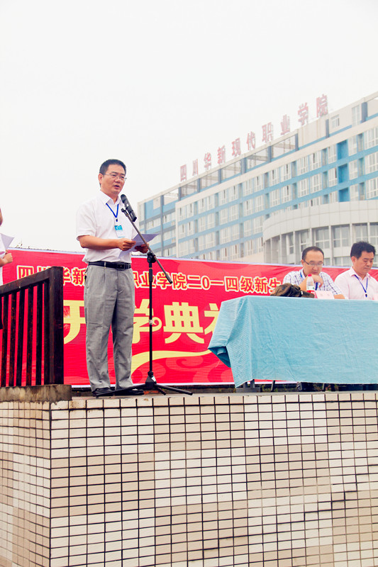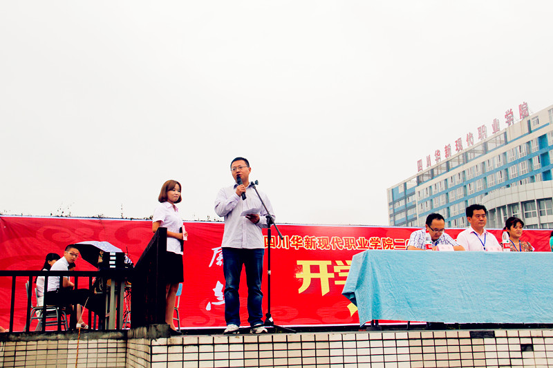 2014年9月1日,四川华新现代职业学院隆重举行了2014级新生开学典礼暨院级入学适应性教育。上午9点,来自祖国各地的2700多名新生整齐地集合在田径运动场。学院党委书记李建川、党委副书记唐明建、副院长周仲文、副院长康敏以及各系处负责人出席了开学典礼。