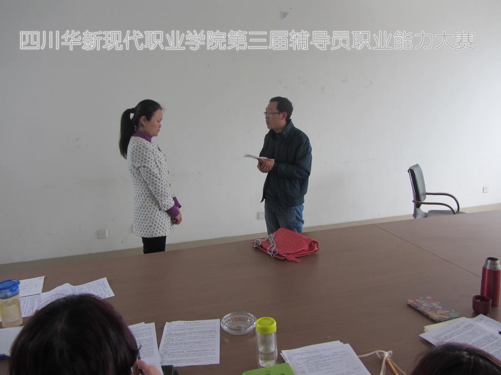 3月19日下午,由学生处主办的我院第三届辅导员职业能力大赛在综合楼523会议室成功举行。学生处处长邓忠、院团委书记杨敏和各系分管学生工作的领导做为评委出席了本次比赛,各系的学工秘书和辅导员等老师也都到场观摩了本次比赛。
