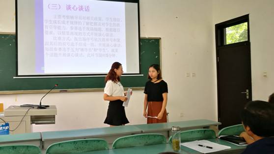 随后选手们进入了案例分析和谈心谈话环节。该环节涉及宿舍人际关系、大学生恋爱、如何适应大学生活、大学生生理健康和心理健康等多个主题。选手们针对高校大学生多发的热点、难点案例逐一进行了认真的分析和说明,表达了自己的解决思路,总结了处理此类工作的经验,给现场观众带来了启迪。在谈心谈话环节,选手们互为教师与学生,在模拟的一对一的交流中,疏导学生的情绪,引导学生正确处理问题,对学生进行了教育和启发,展现了辅导员温暖接纳的态度、良好的沟通技巧和危机处理能力,赢得了现场阵阵掌声。