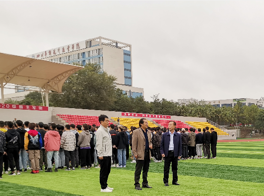 2020年10月13日上午8点整,四川华新现代职业学院2020级3500新生在龙泉驿武装部队45名教官的带领下正式开始了为期14天的军训。学院党委副书记解登高、副院长刘斌、副院长周勇一行第一时间到达训练场视察军训情况,并亲切慰问参训学生与教官。视察过程中,校领导听取了军训团团长杨志强关于本次军训情况的汇报,并强调在接下来的军训工作中,既要高标准、严要求,又要合理安排、科学施训,各相关部门要继续通力合作,确保2020级新生军训工作顺利完成。同时希望同学们能够将14天的军训生活作为一种历练,为接下来的大学生活做好铺垫。