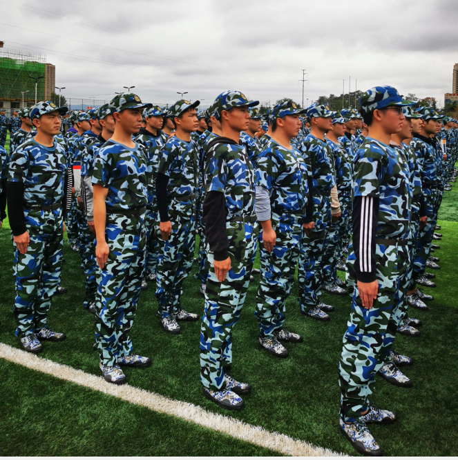 训练场上迎新来,飒飒绽军姿。
