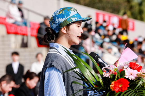 来自教育学院的钱红艳同学代表所有新生感谢学院以及承训教官的培养,并表示这段军训经历将对以后的学习和生活起到积极的作用。