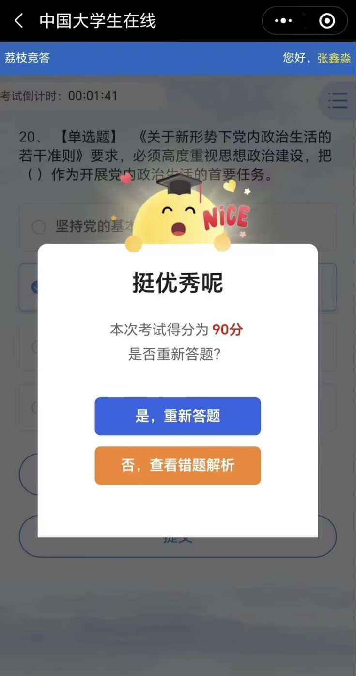 最后,同学们通过“中国大学生在线”微信公众号点击“廉洁答题”栏目和登录中国大学生在线活动平台积极参与答题。