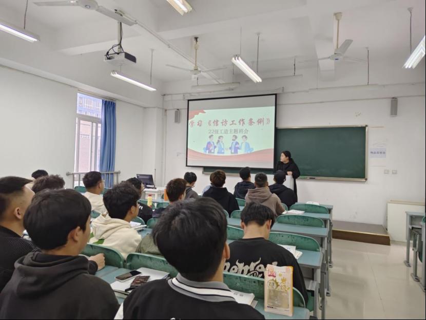 主题班会以辅导员讲授、观看信访相关视频、关注国家信访局微信公众号、案例分析和讨论交流等形式开展。首先,各学院辅导员为同学们讲解了信访工作应当遵循的五大原则、信访工作体制、信访事项的提出和受理、信访事项的办理、监督和追责等内容。然后,辅导员组织同学们围绕信访典型案例进行了热烈的讨论交流。通过学习和讨论交流,让学生了解了信访法律法规,充分认识到如何利用信访知识维护自身的权利,帮助学生全面提高法律意识,了解信访工作流程,在全院营造了学《信访工作条例》、用《信访工作条例》的浓厚氛围。