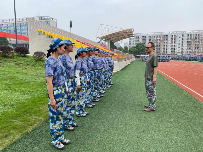 吴参谋一行到校后来到操场进行实地考察,对华新学院的军事训练给予了高度评价。首先,吴参谋对全体承训教官表达感谢,叮嘱大家要严格训练,严肃纪律,树立良好的军人形象和龙泉驿区人民武装部形象。