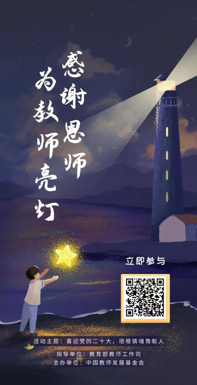 扫码识别推文底部二维码,进入活动页面,点击“立即参与”,长按“点亮感恩之光”按钮,待图片显示至底部,输入亮灯者姓名和老师姓名,再次点击“点亮感恩之光”按钮,生成海报在朋友圈分享将活动传播给更多人