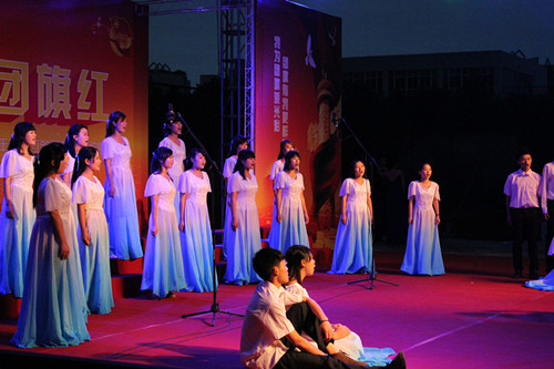 为纪念中国共产主义青年团成立90周年,由院学生处、团委、学生会承办,各系协办,主题为“党旗辉映团旗红”歌咏比赛暨表彰大会于2012年5月22日晚,在学院足球场隆重举行。学院党委书记、院长李建川,副书记唐明建,副院长周仲文,西河镇团委领导、兄弟院校代表及全院师生参加了本次晚会。