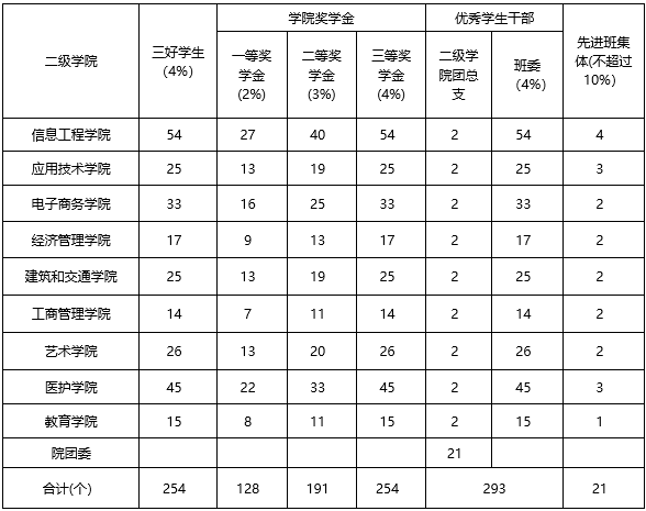 2.先进个人由各班级评审组评定,评定后汇总到二级学院;先进班集体由各二级学院评审组评定。