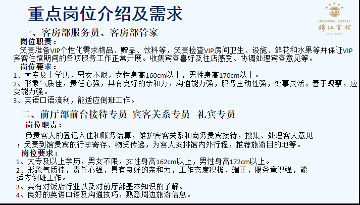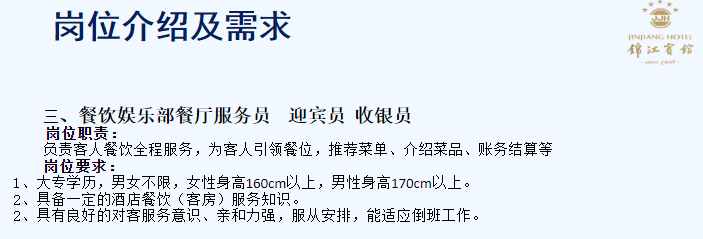 锦江宾馆招聘简章