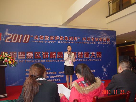 2010年11月25日,旅游系2008级旅游管理专业学生汪静、2009级旅游管理专业学生刘亚玲代表学院首次参加“成都旅游职教集团杯四川省旅游院校导游暨景区讲解员服务技能大赛”。出席本次大赛开幕式的有四川省旅游协会、成都旅游职业教育集团、四川省旅游协会教育分会、成都职业技术学院、成都文旅集团等主要领导。